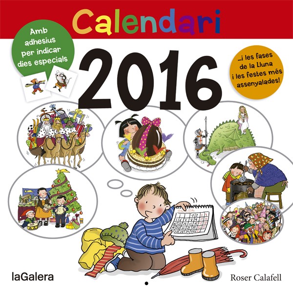 Un calendari per penjar a la paret i portar el control de tots els dies de l'any 2016. Les festes, els dies d'excursió, d'anar al metge... Amb un munt d'adhesius per assenyalar dies especials, com ara la caiguda d'una dent o un aniversari. Amb un format gegant per poder-ho apuntar tot i dur el control de tota la família. Cada pàgina correspon a un mes.