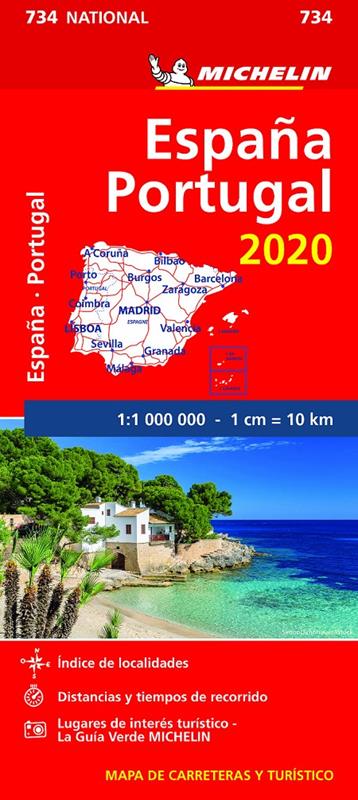 La edición actualizada del Mapa National España Portugal, editado a escala 1/1 000 000, incorpora nuevos contenidos: un índice de localidades, cuadro con las distancias y tiempos de recorrido, así como lugares e informaciones de interés turístico que han sido extraídos de La Guía Verde MICHELIN.