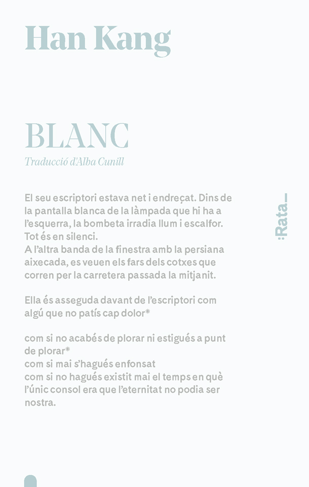 «Blanc és profund i preciós, cada imatge és poderosa i precisa. Han Kang és un geni». Lisa McInerney