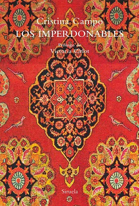 Imperdonable, Cristina Campo, como Hugo von Hofmannsthal, Marianne Moore o Gottfried Benn, porque su pasión es la perfección: «La pasión por la perfección llega tarde. O, mejor dicho, se manifiesta tarde como pasión consciente». Estas son las primeras frases del texto «Los imperdonables» que da título a este libro, en el que fueron reunidos sus escritos sobre las fábulas, sobre autores en los que ella se reconoce y cuya lectura llega hasta el fondo mismo de su ser para mostrarlos sin máscaras, en su más absoluta desnudez, como le confesó intimidado William Carlos Williams.