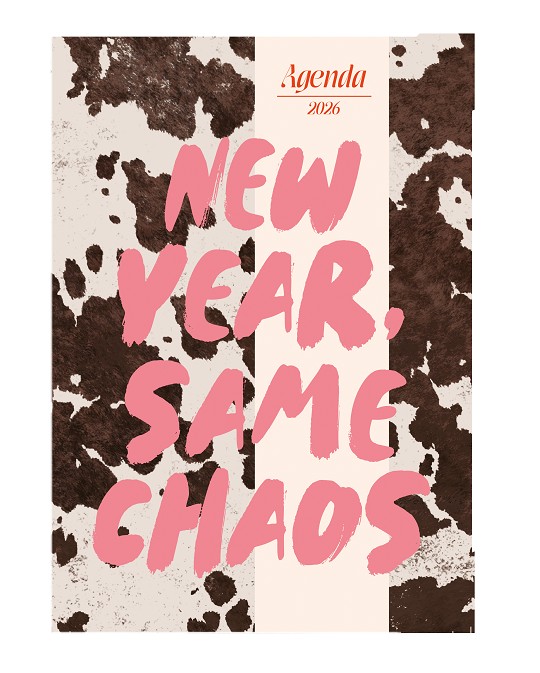 La portada en animal print, combinada con una tipografía atrevida y que contrasta, lo dice todo: esta agenda tiene personalidad y no va a pasar desapercibida.